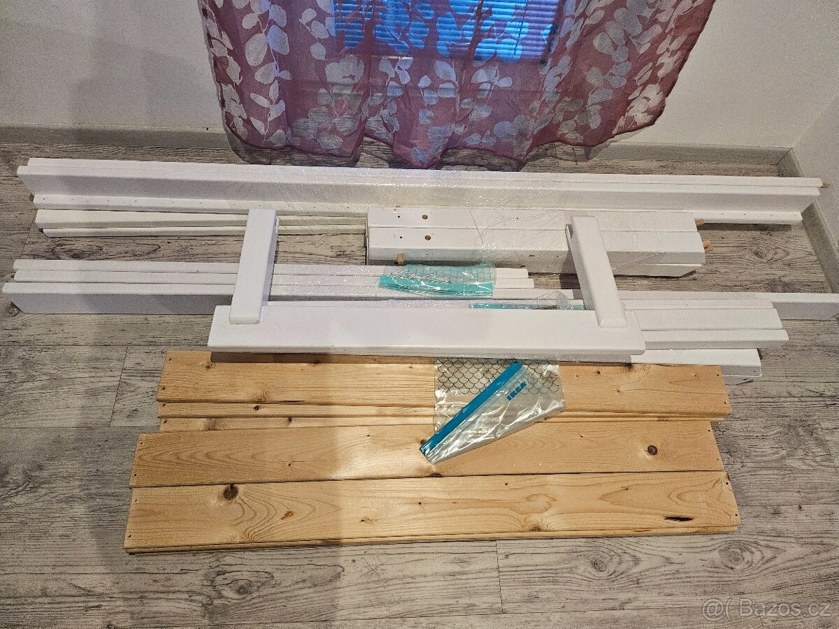 Dětská dřevěná domečková postel - bílá (90x200cm) - [18.3. 2026]Prodám úplně stejnou postel jako na fotce. Nesloženou, nepoužívanou, originálně zabalenou.