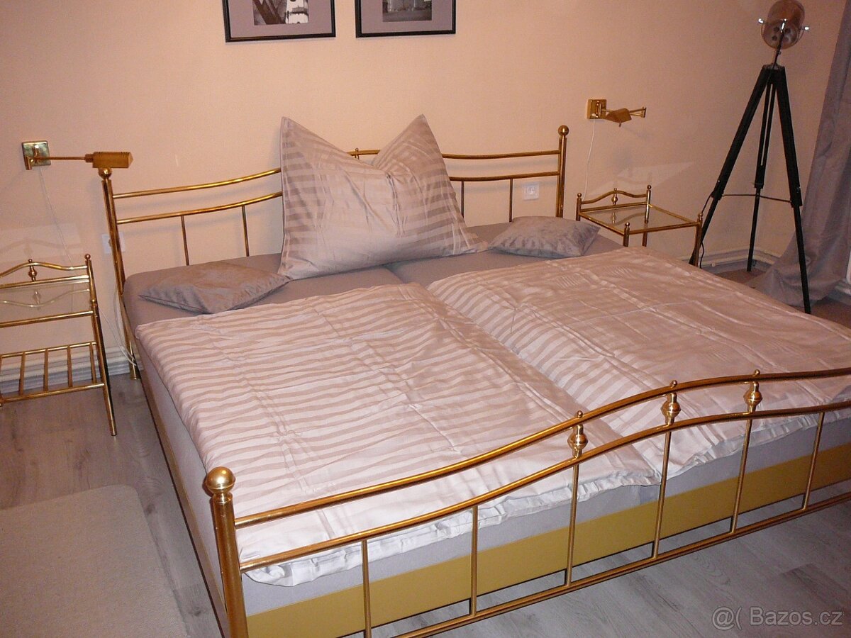 Jedná se o postel(205x210), polohovací el. ovládané rošty 2x (100x200), speciální latexové matrace 2x,noční stolek se skleněnou poličkou 2x, nástěnná otočná lampička s regulátorem intenzity 2x, sedací/odkládací taburet 1x.