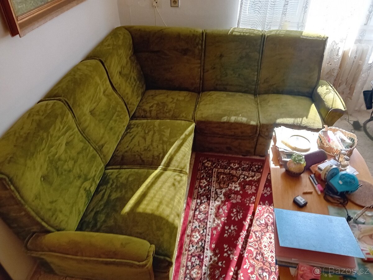 Prodam zelenou semisovou rohovou sedacku velice peknou,210x220cm,mozno i jinak poskladat,lze jednotlive rozlozit.Vice na telefonu.