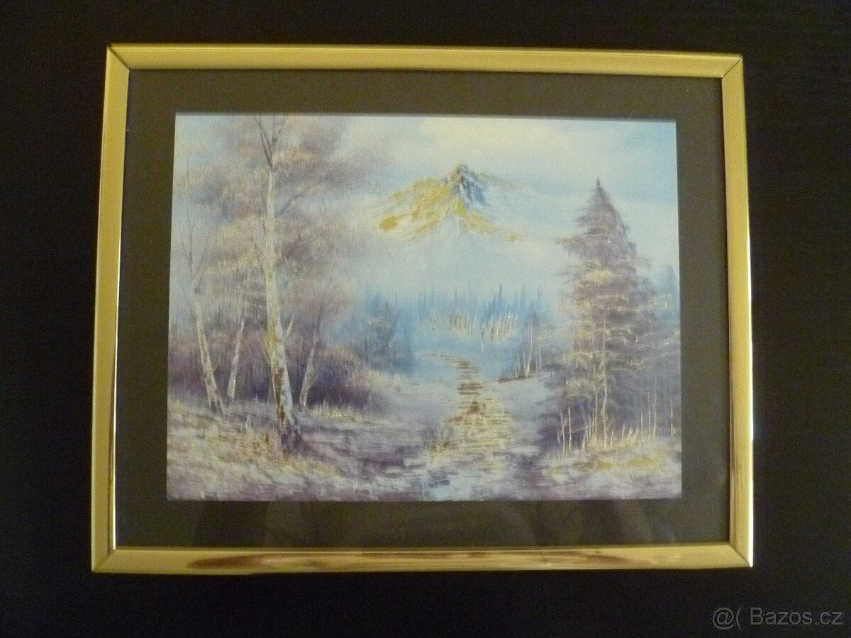 Prodám 2x obrázek, zlatý rámeček, rozměry 28x23 cm. Velice pěkné na stěně. Možné odebrat dohromady nebo každý zvlášť. Cena 159 Kč za 1 ks.