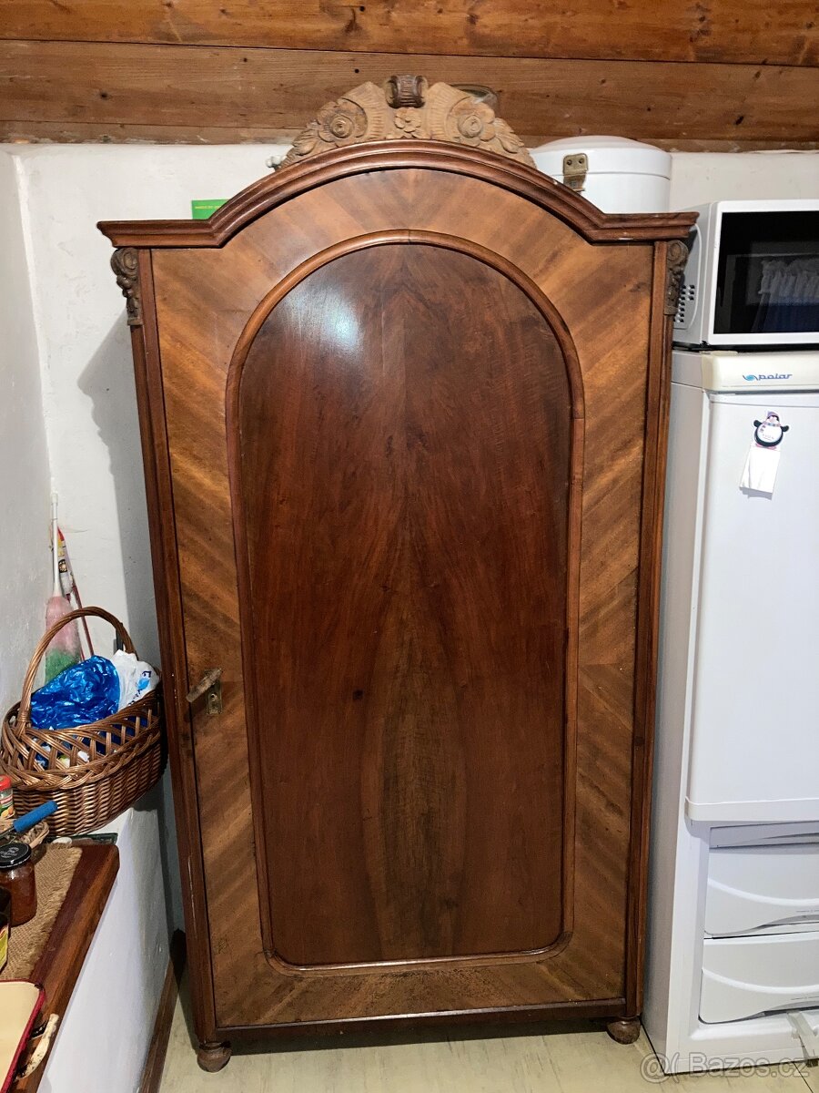 Starožitná šatní skříň (almara) cca r.1900 - [14.4. 2026]Skříň je zaprašena a nemá zámek.