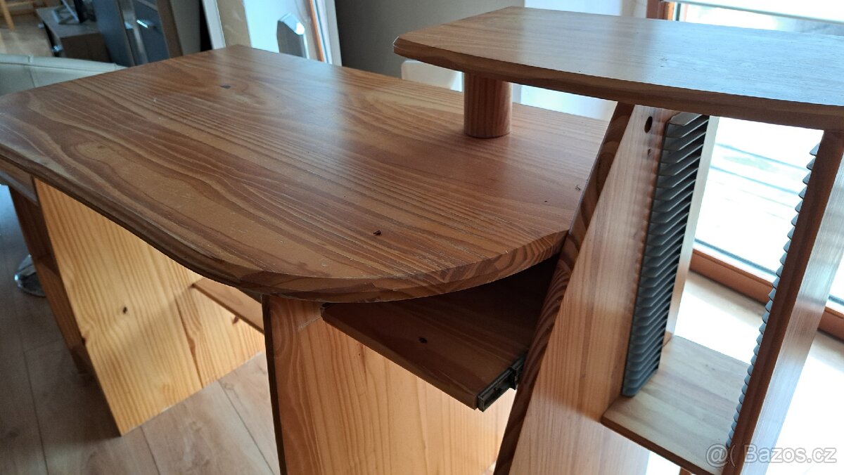 Prodám rohový počítačový stůl - [22.3. 2026]Nabízím klasický psací stůl s výsuvnou deskou a skříňkou, vhodný pro počítač, školní pomůcky nebo jiné potřeby.