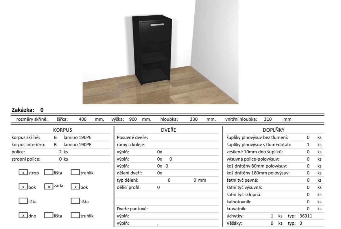 Prodám skříňku se šuplíkem a poličkami, černou, výroba na míru. Nejeví známky opotřebení. Nutný vlastní odvoz nebo dle domluvy. K dispozici od konce března nebo dle domluvy. Kontakt prosím přes formulář.