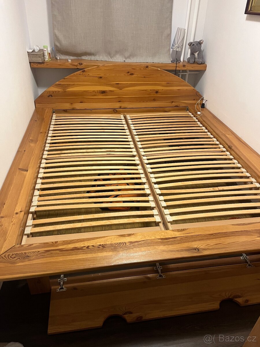 Prodám manželskou postel 200/160 ze dřeva udělaná na zakázku před pár lety,z důvodu rekonstrukce měníme na novou .Je v úplném pořádku a bude ještě sloužit dlouho,má uloženy prostor,rošte rada přidam k posteli bez matrace tu si nechám