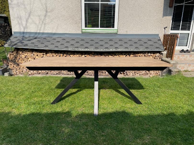 Prodám rozkládací jídelní stůl s kovovým podnožím v přírodním hnědém odstínu. Kvalitní rozkládací systém, pevný stabilní. SUPER CENA.