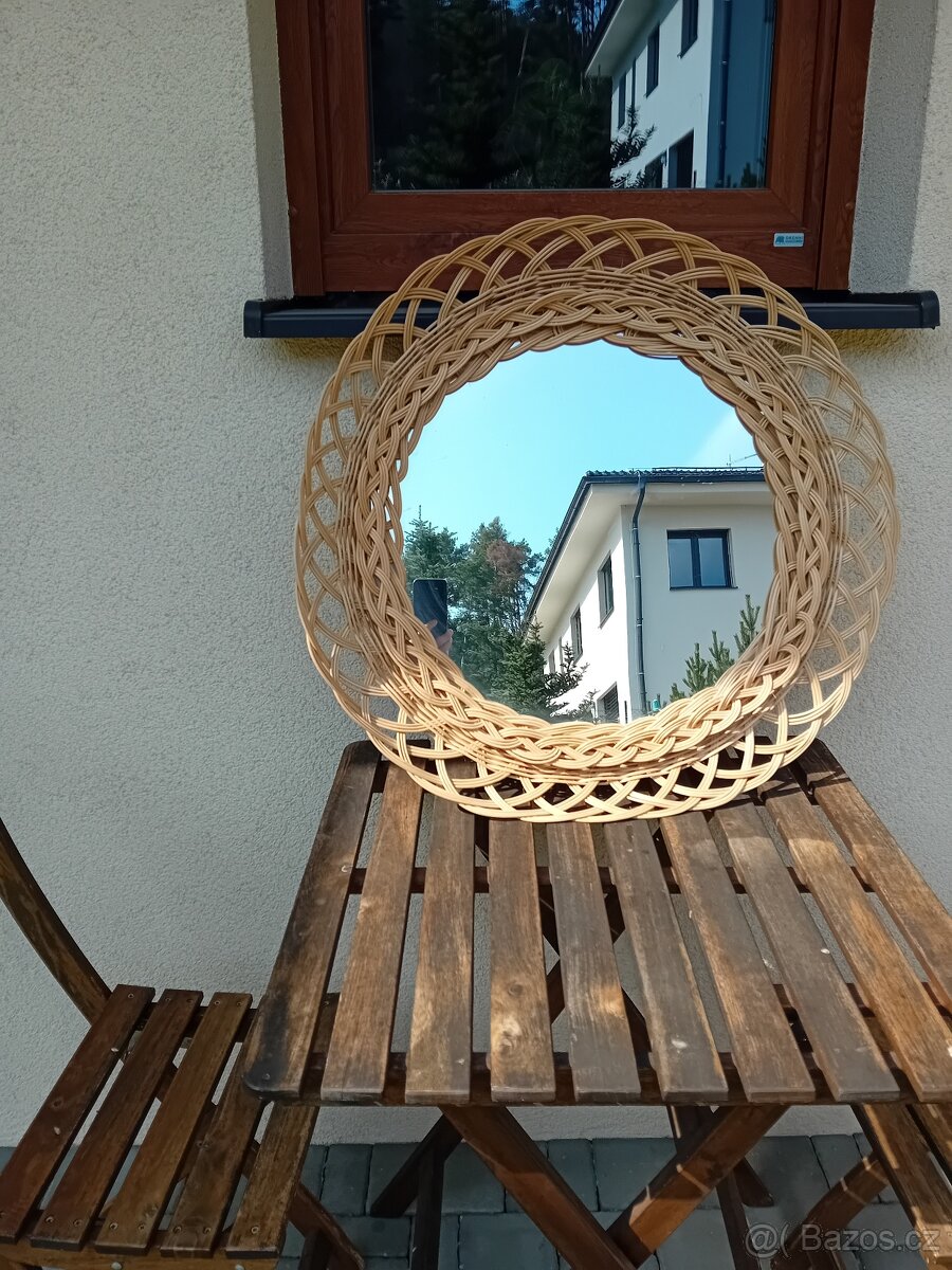 kulatě zrcadlo, proutěná dekorace