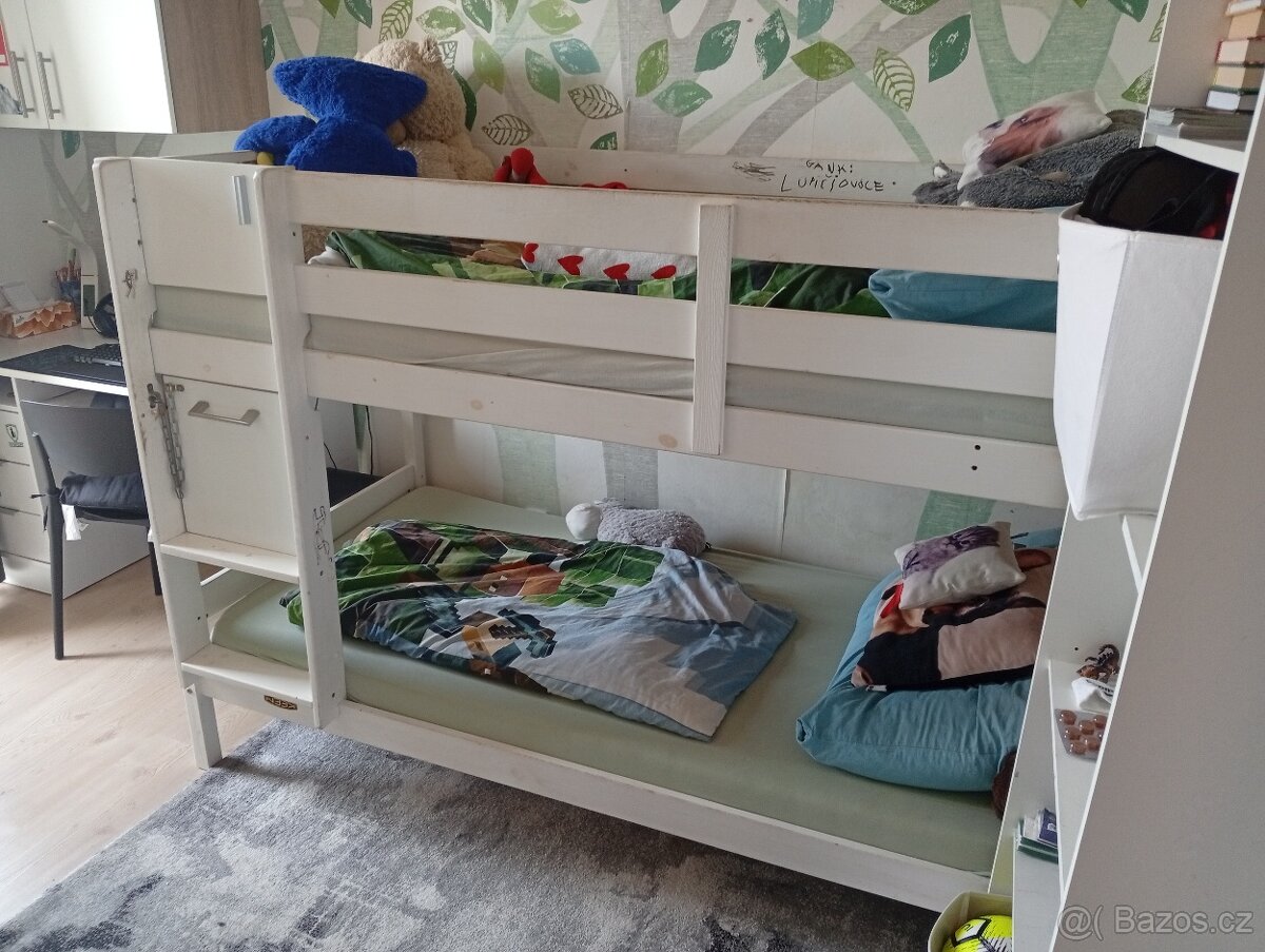 Prodám dětskou palandu z masivního dřeva,plocha lůžek je 90 x200 cm nosnost jednoho lůžka 90 kg
