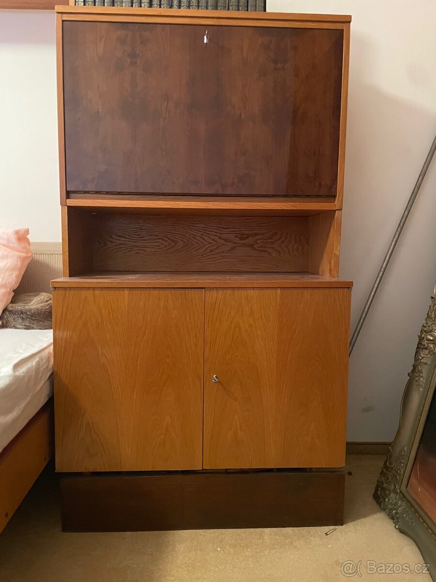 Lakovanà knihovna - [24.4. 2026]Prodám nábytek ze 70.let ve velmi dobrém stavu.Cena dohodou.2x komoda, prosklení,otevírací bar.