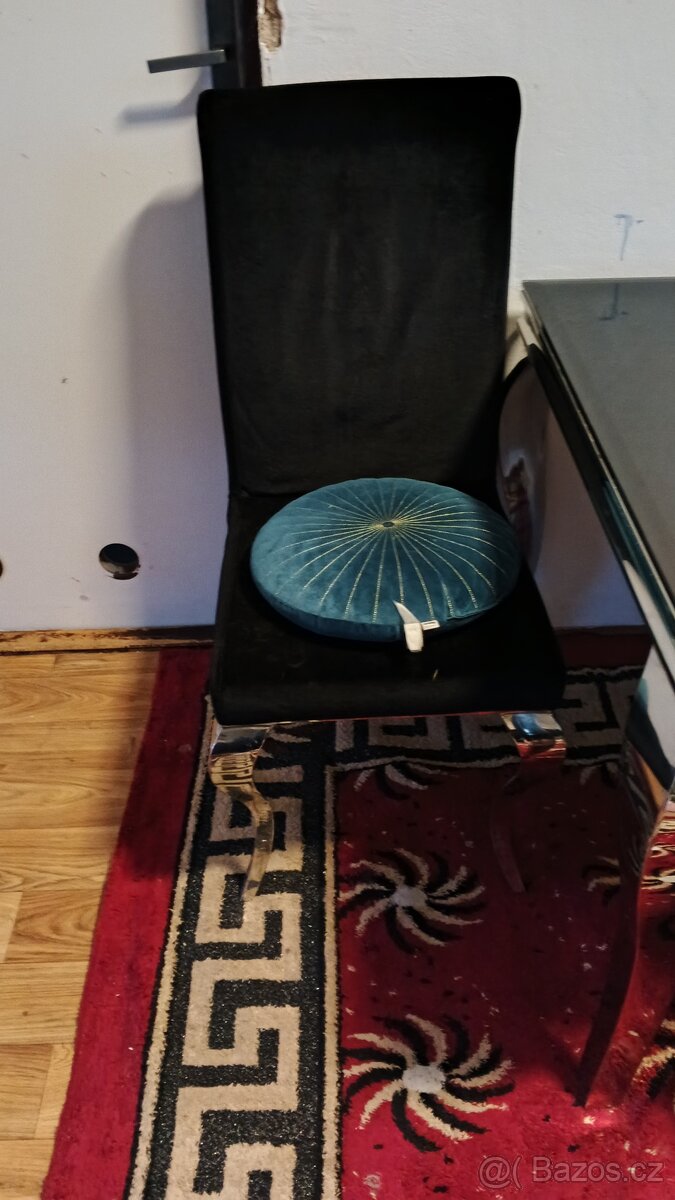 Skleněný černe sklo a 4 židle ,materiál semiš černý více info sz cena pevná .
