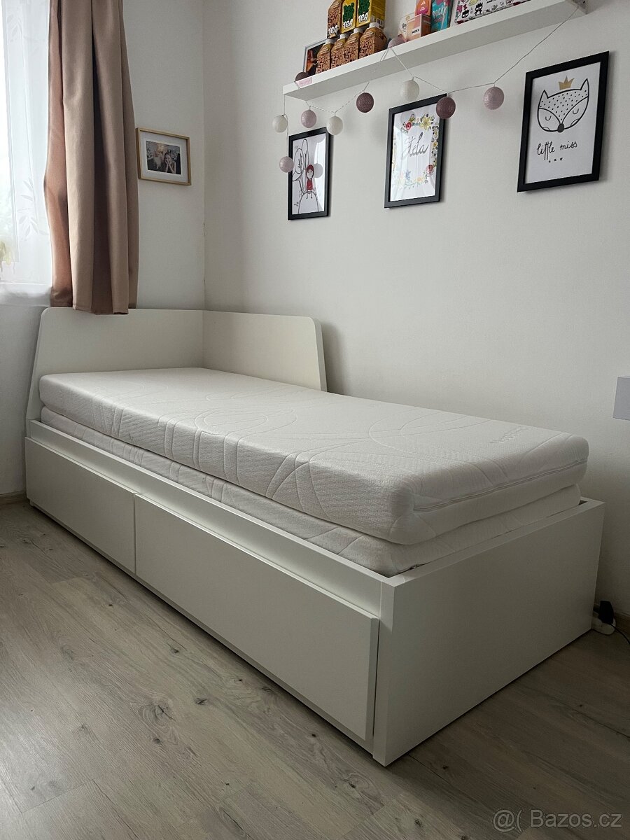 Prodám Rozkl. postel se 2 zás. a 2 matr., bílá/Åfjäll střední tvrdost, 80x200 cm. Celou dobu na posteli spalo dítě 20-35kg.