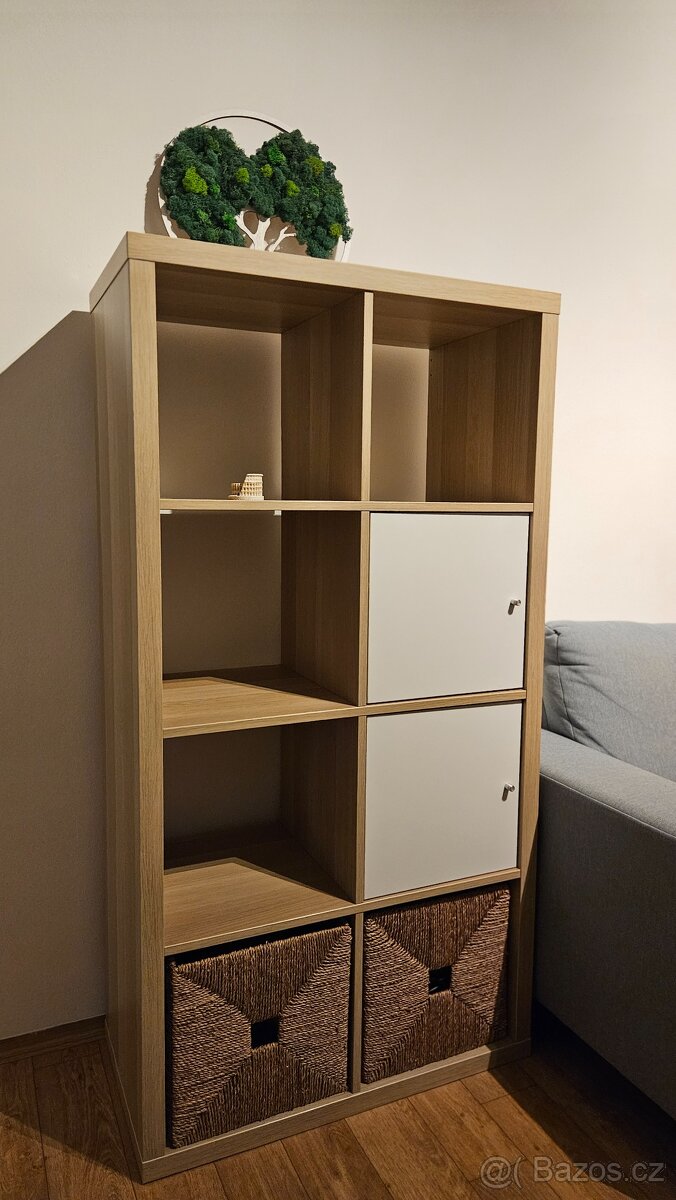 Kallax + 4 vložky s dvířky IKEA - [26.4. 2026]Moc pěkný stav, žádné vady (pouze přišroubováno do zdi)