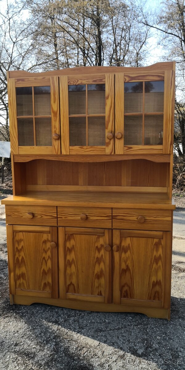 Prodám masivní příborník,rozměry: šířka-123cm,hloubka-43cm,výška-178cm. Příborník lze rozdělat na dva díly. Odběr je v Biskupicíh u Luhačovic - LEERI nábytek.