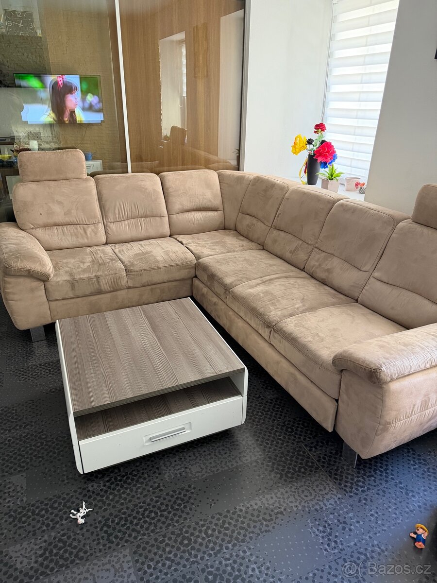 Prodám rohovou sedací soupravu rozkládací , kupováno XXL Lutz, Cena nové soupravy 35 000 Kč