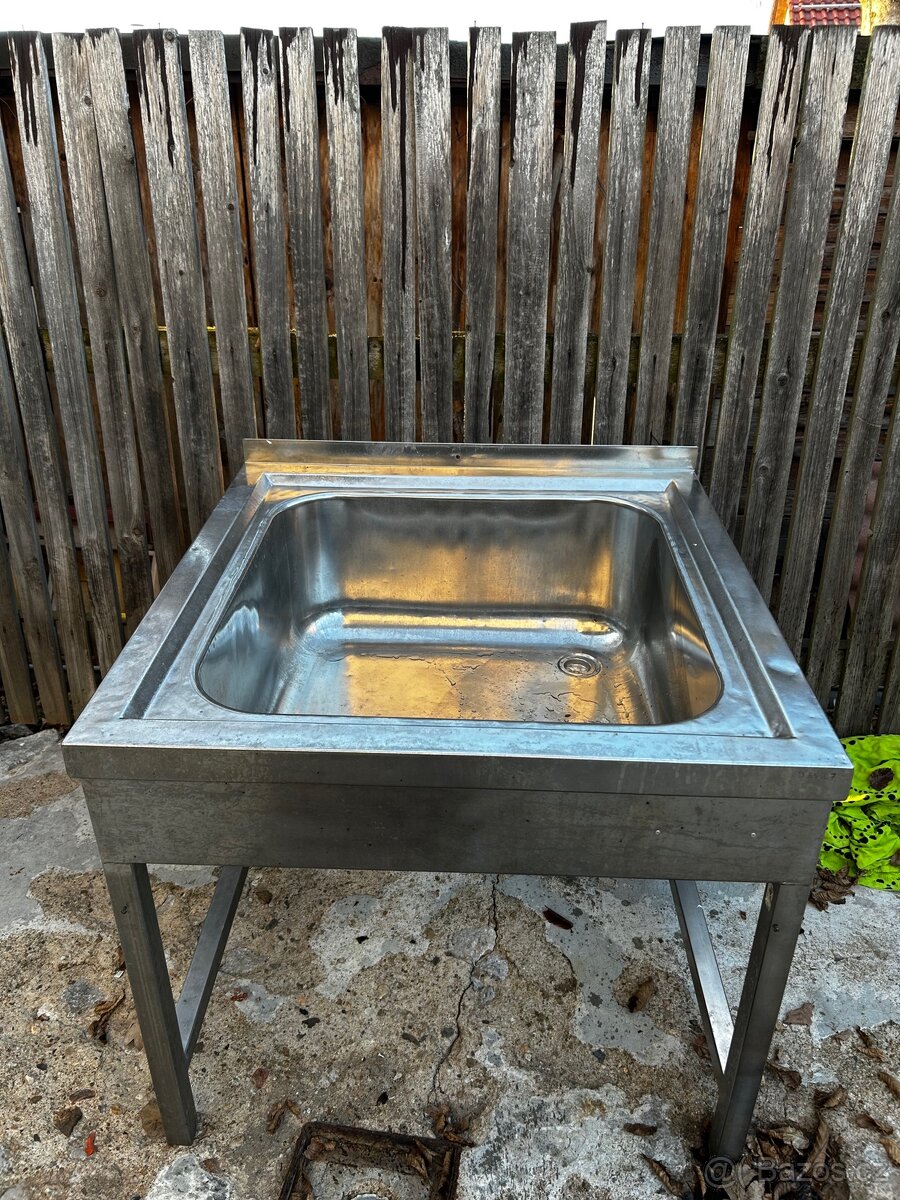 Profi nerezový mycí stůl s dřezem (Gastro) - [19.4. 2026]Prodám profesionální celonerezový mycí stůl vhodný do gastro provozu (kuchyně, přípravna, mytí černého nádobí, kavárna, řeznictví...). Stůl je stabilní a pevný.