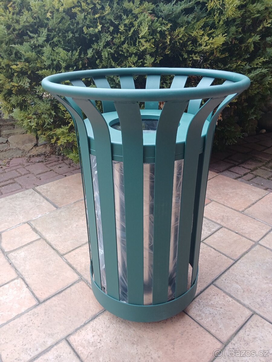 Kruhová nádoba na odpad s pozinkovanou vnitřní nádobou. Velmi vhodná pro použití venku.