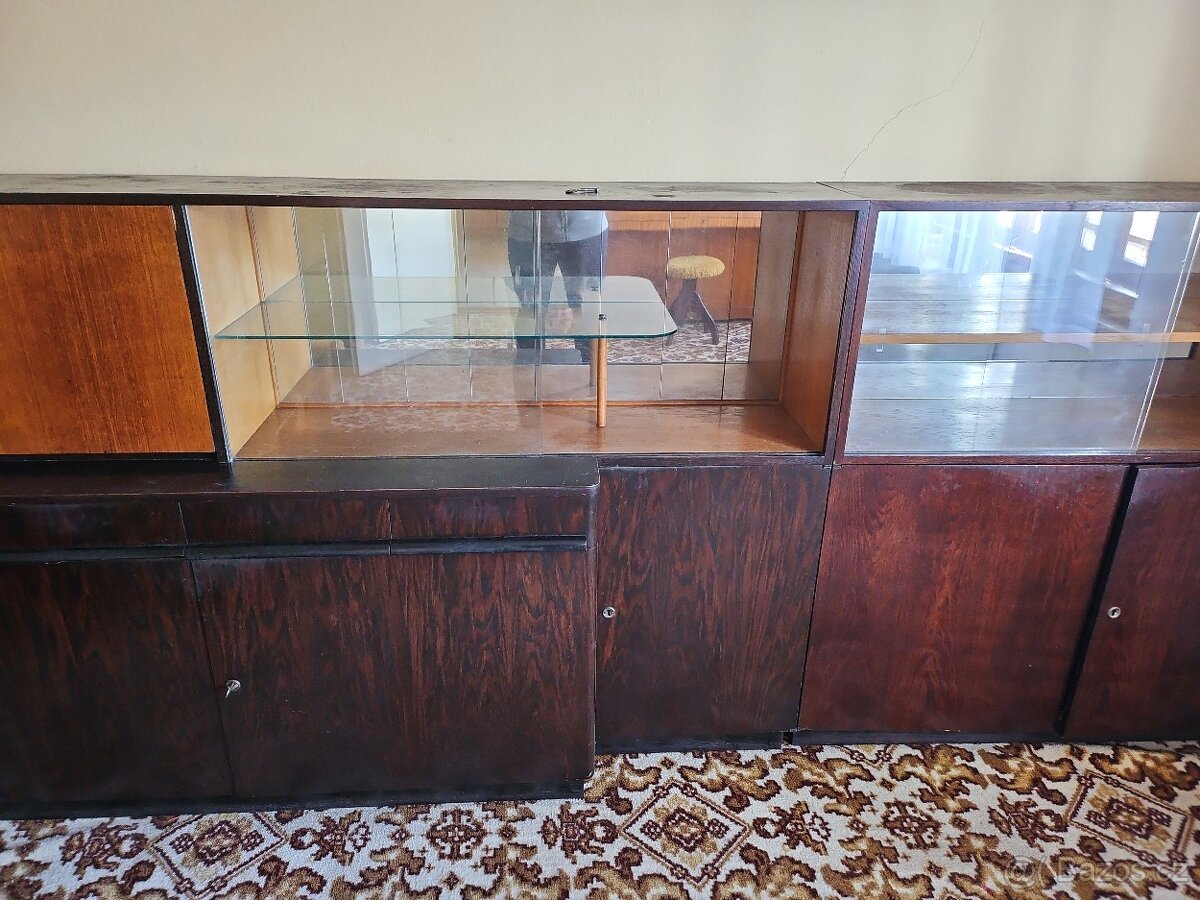 Obývací stěna - [21.4. 2026]Zachovalá obývací stěna délka 4330mm, hloubka 330mm, výška 540mm a 1980mm, rohová skříň. Úzké komody 540mm, široká komoda 1090mm, barová skříň 740mm. Podrobnější výklad případnému zájemci.