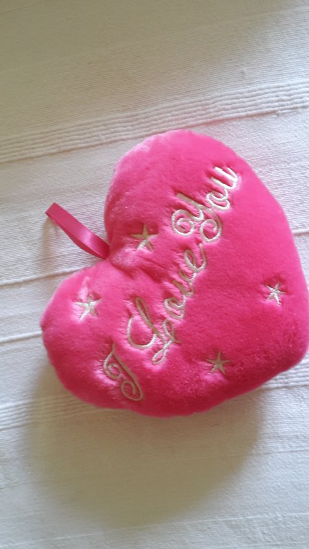 Možno použít jako polštářek nebo na zavěšení. Růžové, nápis "I love you". Velikost cca 20 x 15 cm.