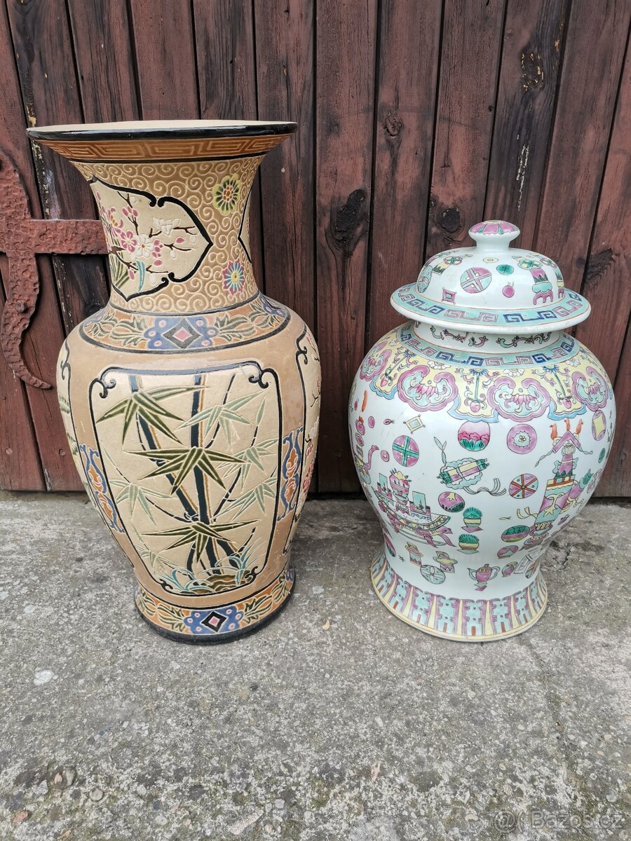 Prodám vázy viz foto. Hnědá: v 53cm, zelená v 40cm. Cena za obě vázy. Mob: 739 088 226