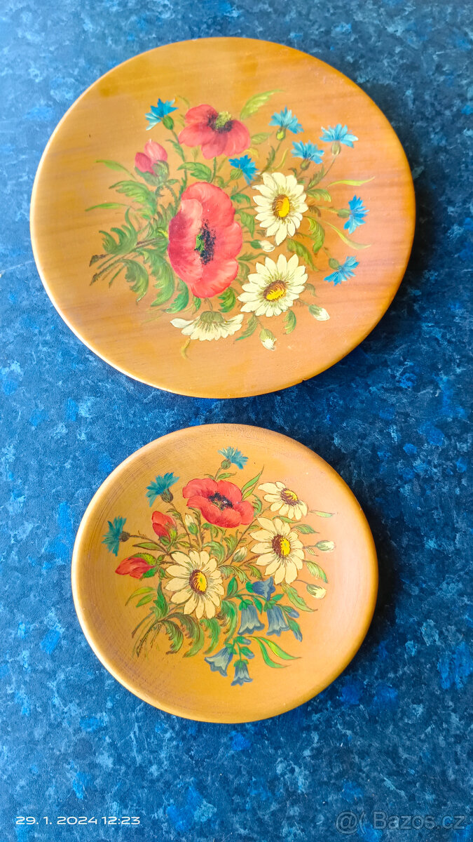 Dřevěné ručně malované talíře. Možnost zavěšení.