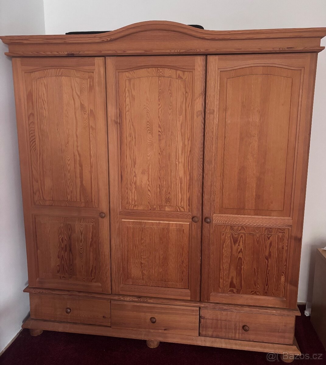 K dispozici celodřevěná zachovalá skříň , větší prostor tyč , menší část police.