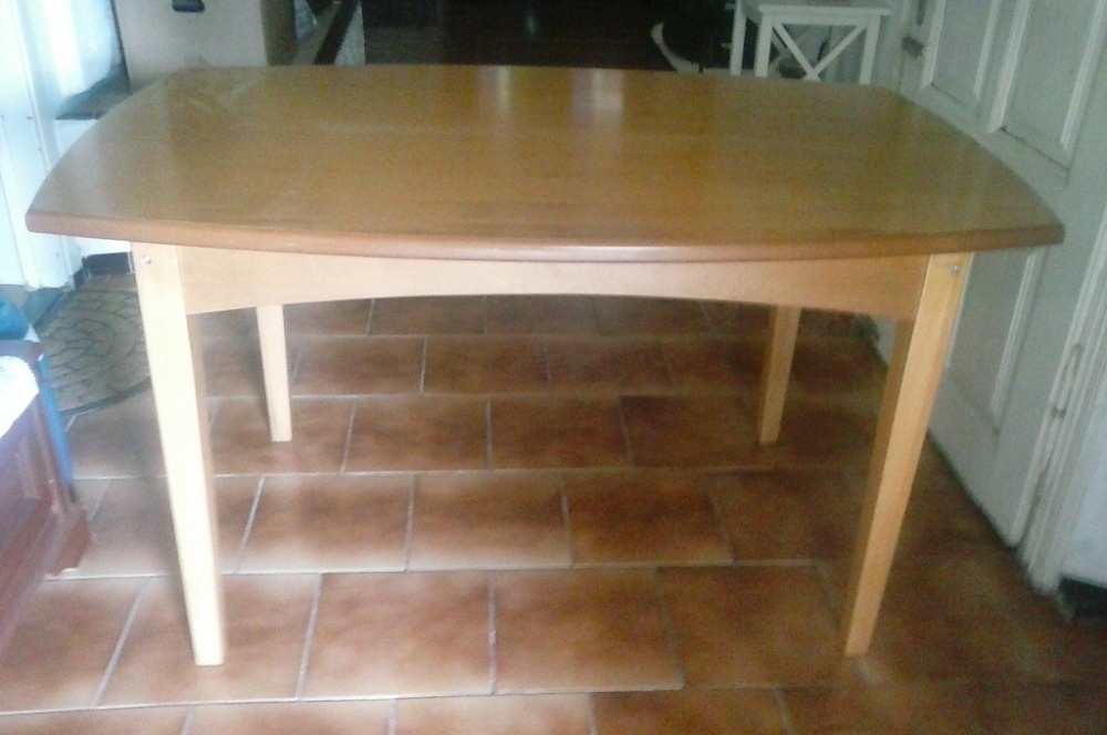 Jídelní stůl a židle - [22.4. 2026]Prodám sestavu jídelního stolu a židlí. Stůl má rozměry 150x90cm. Deska má v jednom místě trochu škráblý lak (viz foto), jinak je vše v dobrém stavu.