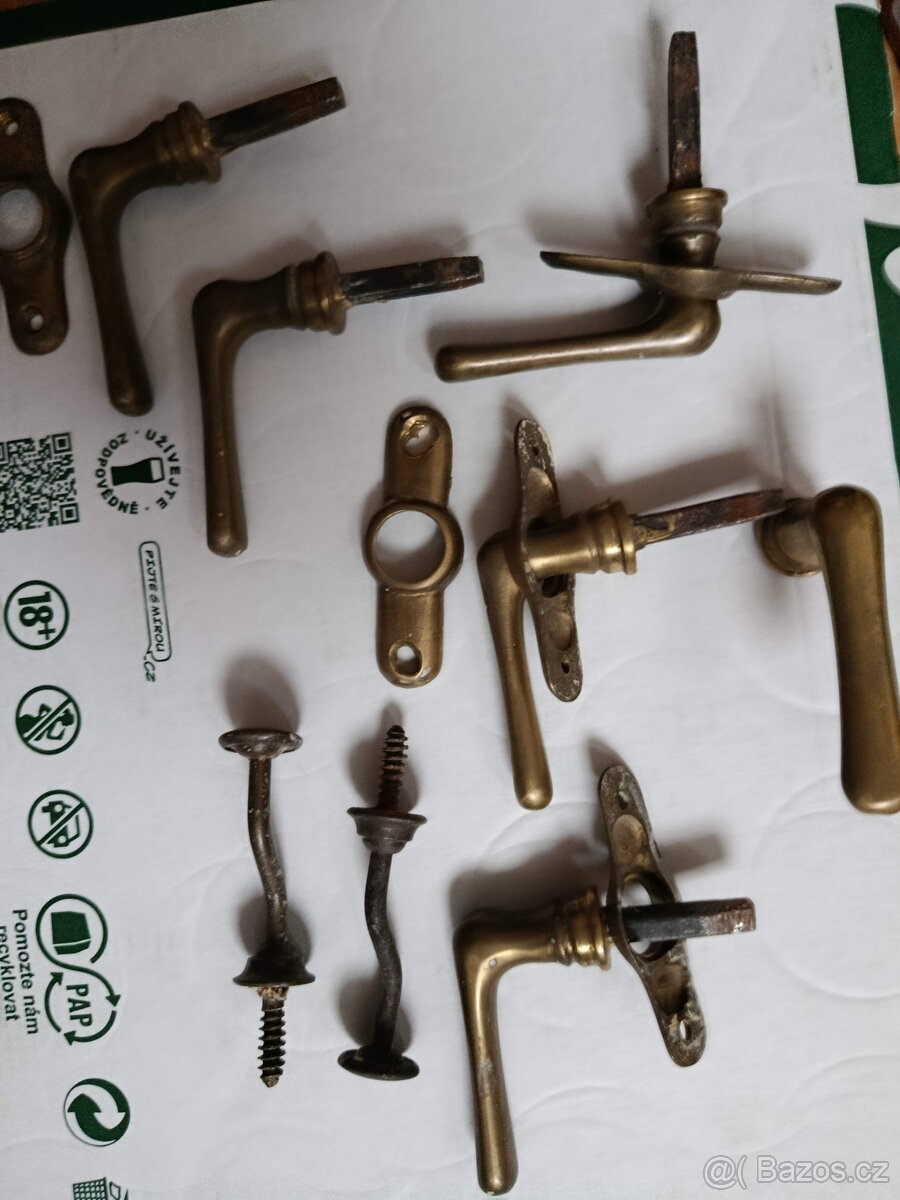 Prodám mosazné okenní kličky, různé druhy, kus za 100 Kč.