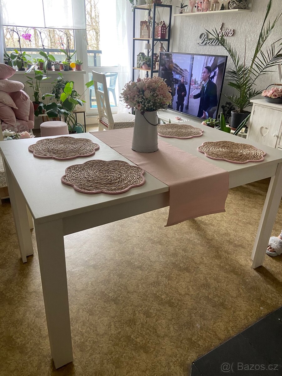 Bílý jídelní stůl,šiře85 délka135