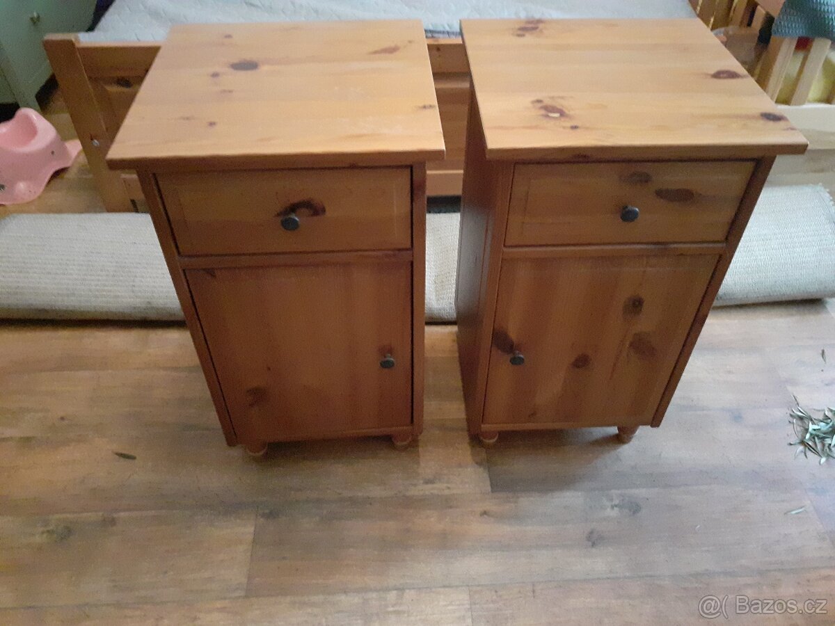 Noční stolky 2 ks - [21.2. 2026]Prodám 2 noční stolky. Použité,stav 99%. Materiál-lamino 32/17mm. Kvalitní zpracování ,není to IKEA. Původní cena 3500- 1ks . Cena 1000 za oba. Rozměry viz. foto.