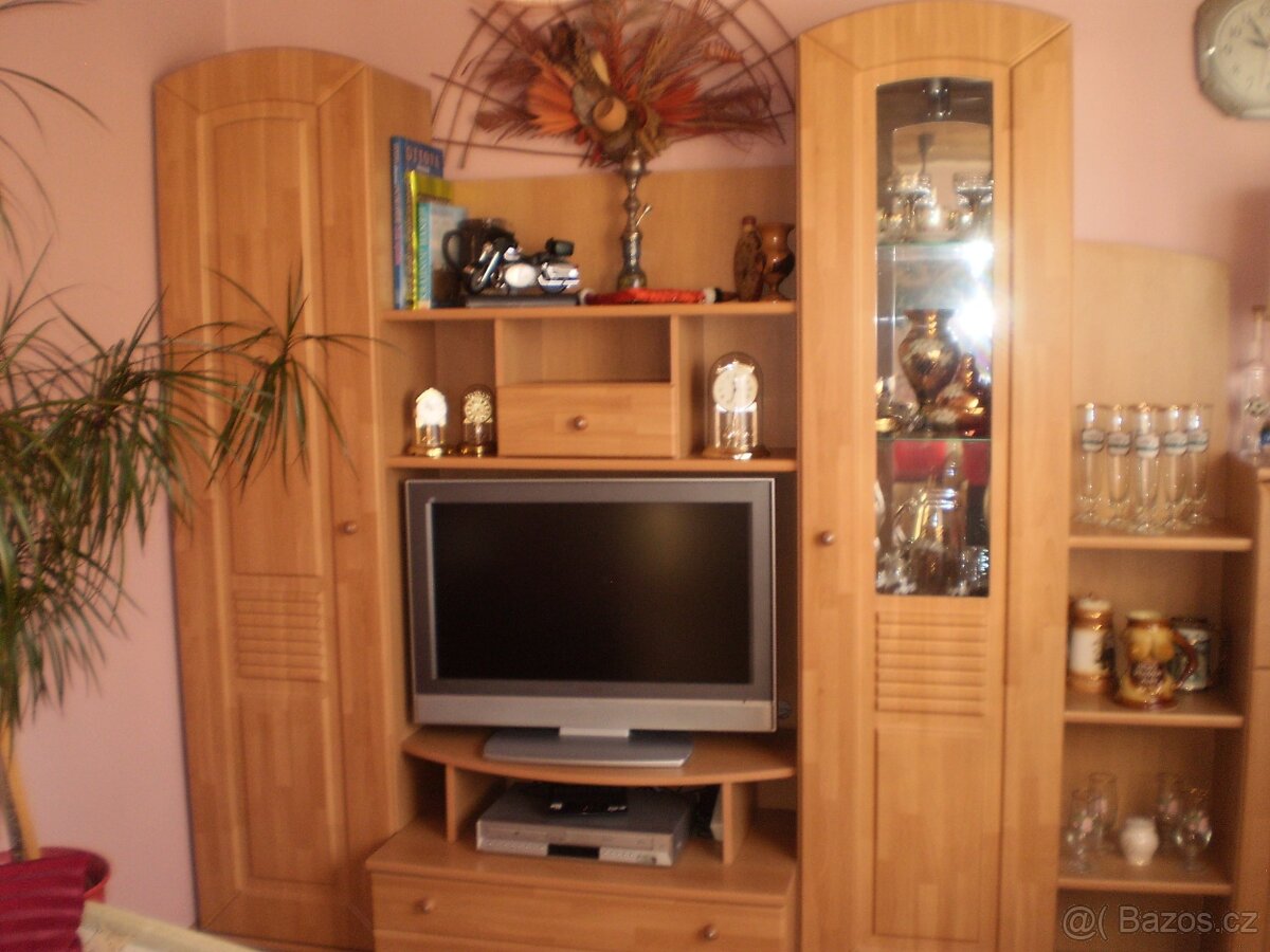 nabízím obývací stěnu - velice pěkná praktická stěna, úložný prostor, vitrína - s osvětlením, míry jsou uvedeny na fotu, částečně již vyklizena, v případě zájmu ihned vyklidím, možno vidět, dohoda možná