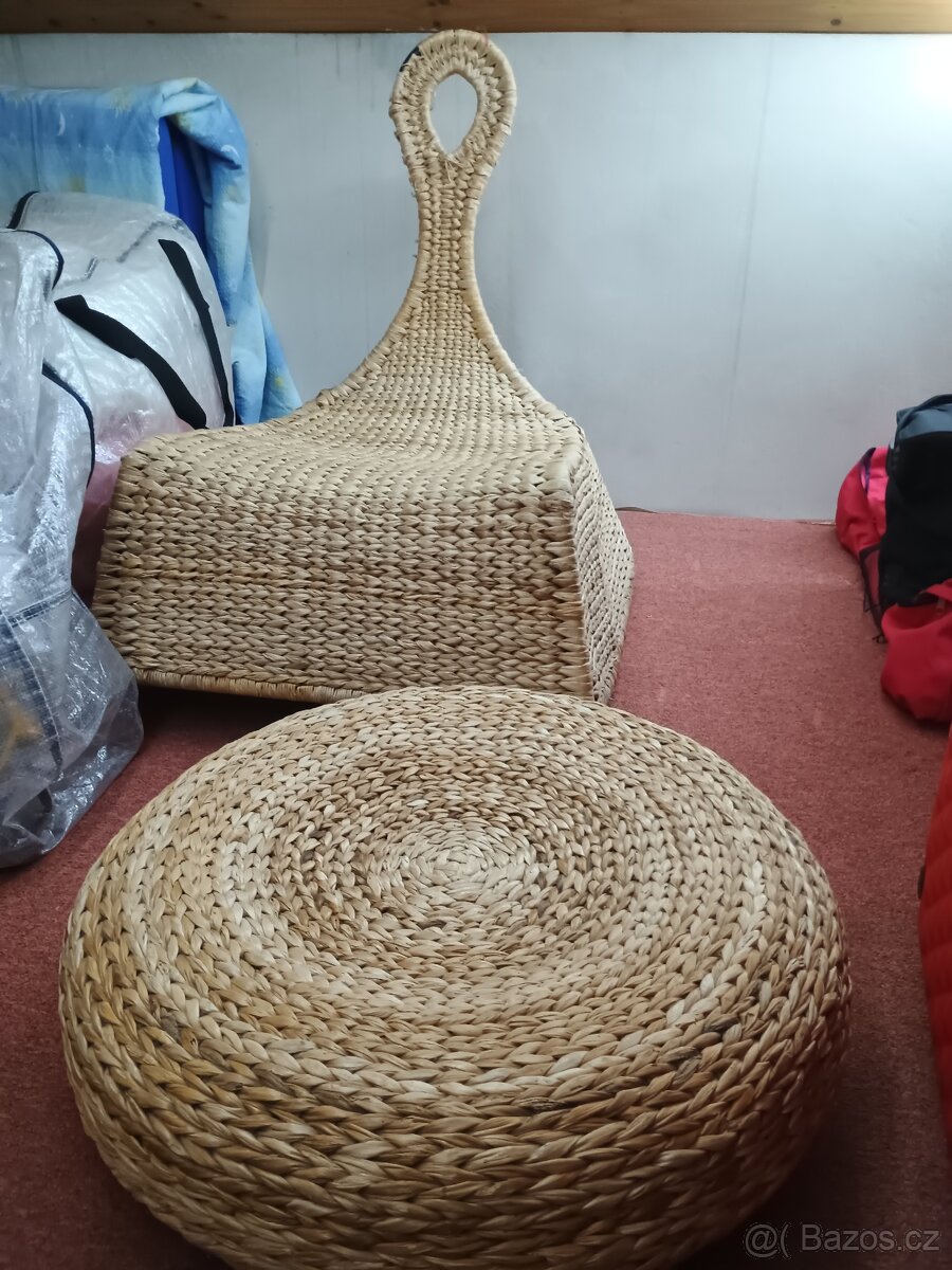 Prodám použité proutěné křeslo a taburet. Cena celkem 1400kč