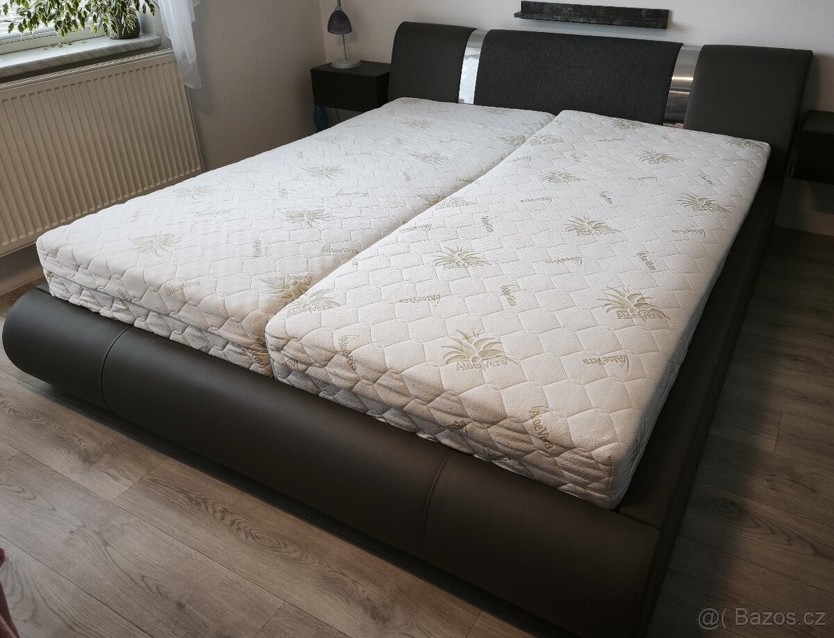 Prodám rám postele, šedá koženka, čelo částečně čalouněné,