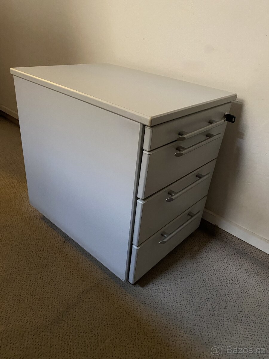 Nabízím šedý kontejner se šuplíky. Vhodný pod stůl nebo jako odkládací prostor. Rozměry: hloubka 62 cm, výška 60 cm, šířka 45 cm. K vyzvednutí na Praze 1.