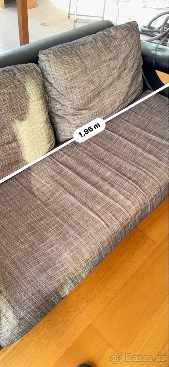 Rozkládací sedací souprava - [27.4. 2026]Rozměry na spaní 195x145 cm, výška 42 cm. S úložným prostorem a dvěma polštáři