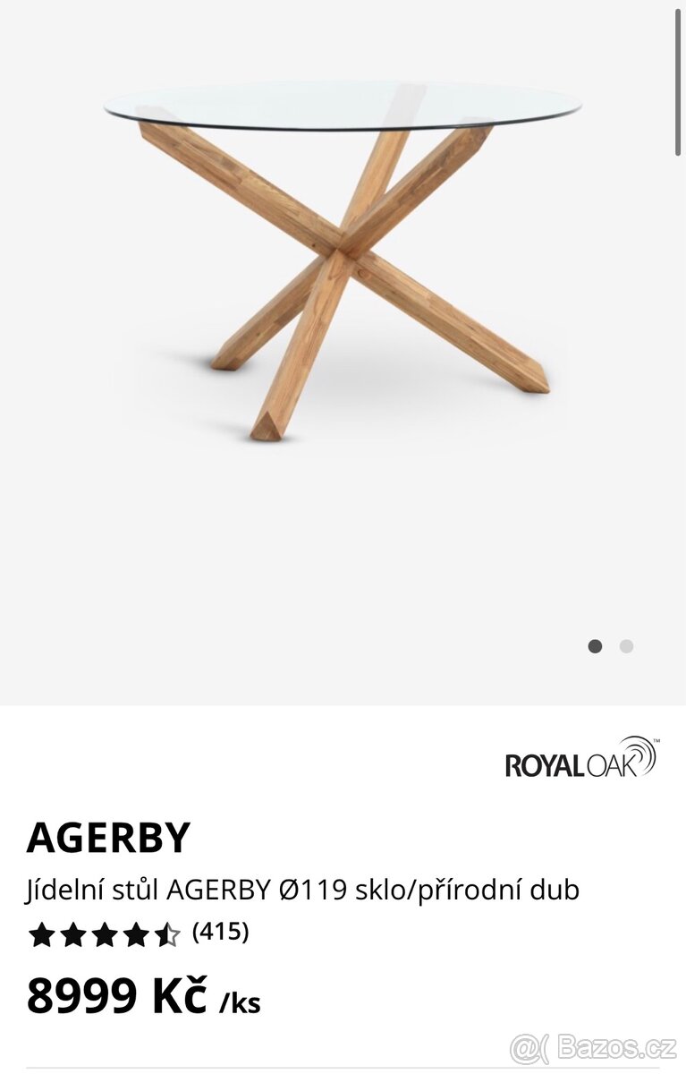 - s deskou z tvrzeného skla a nohy z masivního dubu. Dřevo je ošetřeno olejem kvůli ochraně a zdůraznění přirozené barvy. Ø119xV76 cm