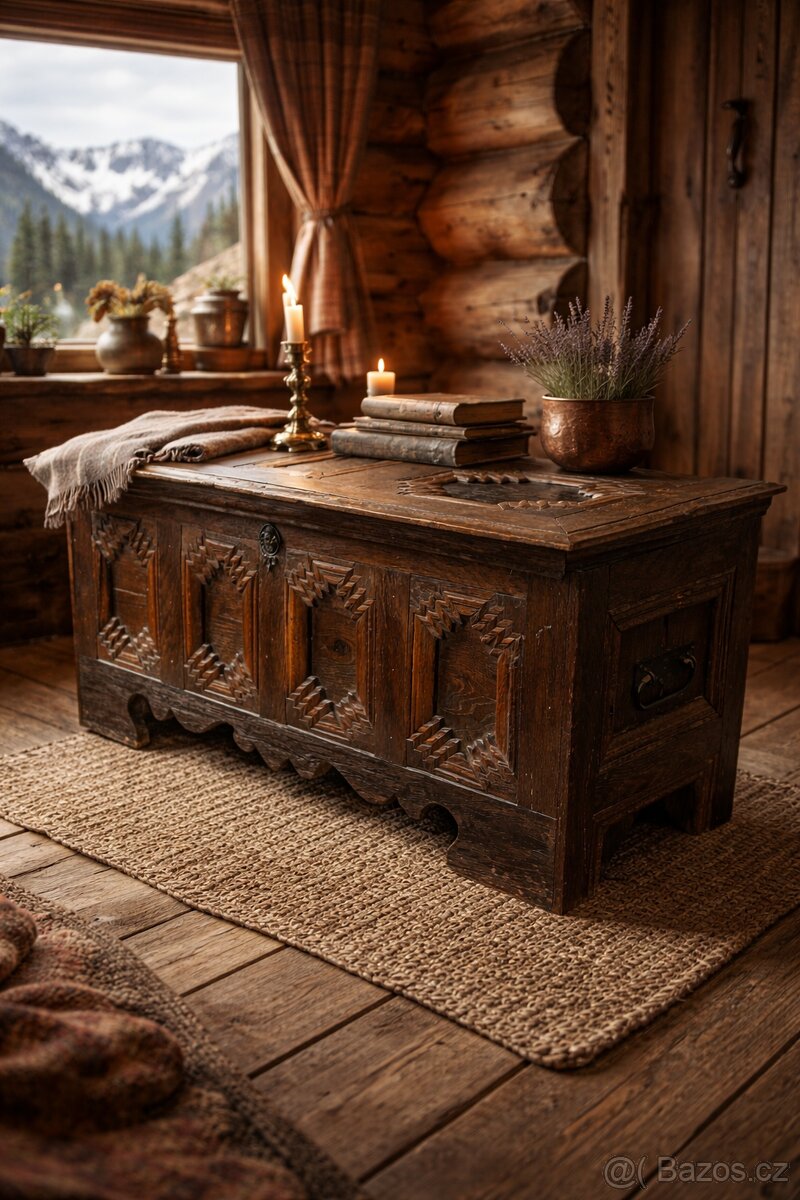Ideální jako výrazný solitér do horské chalupy, roubenky nebo rustikálního interiéru. Vhodná také jako praktický úložný prostor na ložní prádlo či dekorativní kus nábytku.