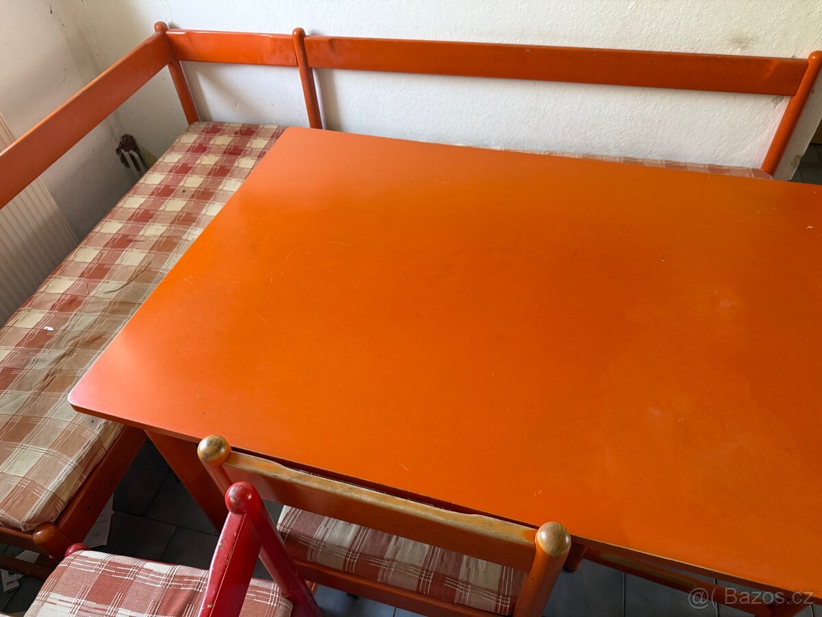stůl, rohová lavice, 3 židle