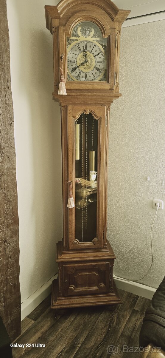 Luxusní rustikální podlahové hodiny s osvětlením . - [25.3. 2026]Prodám dubové, mechanické,podlahové hodiny s melodií a osvětlením . Vnitřní rohové poličky.
