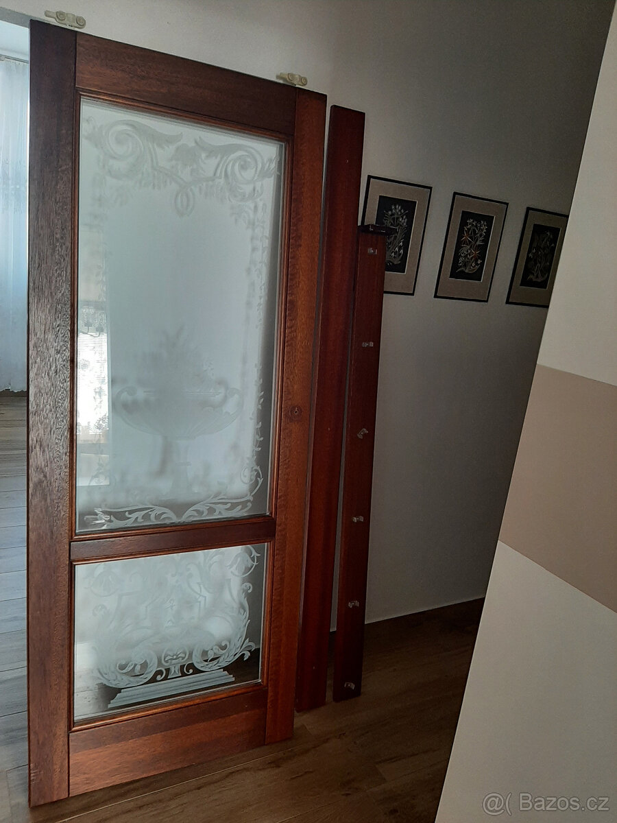 Prodám interiérové posuvné dveře viz. foto. Gravírované sklo se vzorem mísy. Rozměry: šířka 80 cm, výška 200 cm, tloušťka 4 cm. Preferuji kontakt přes sms.