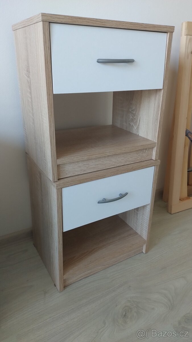 Noční stolky 2 ks - [27.4. 2026]Prodám 2 ks nočních stolků, každý stolek má dva šuplíky, barva bílý dub, bez poškození