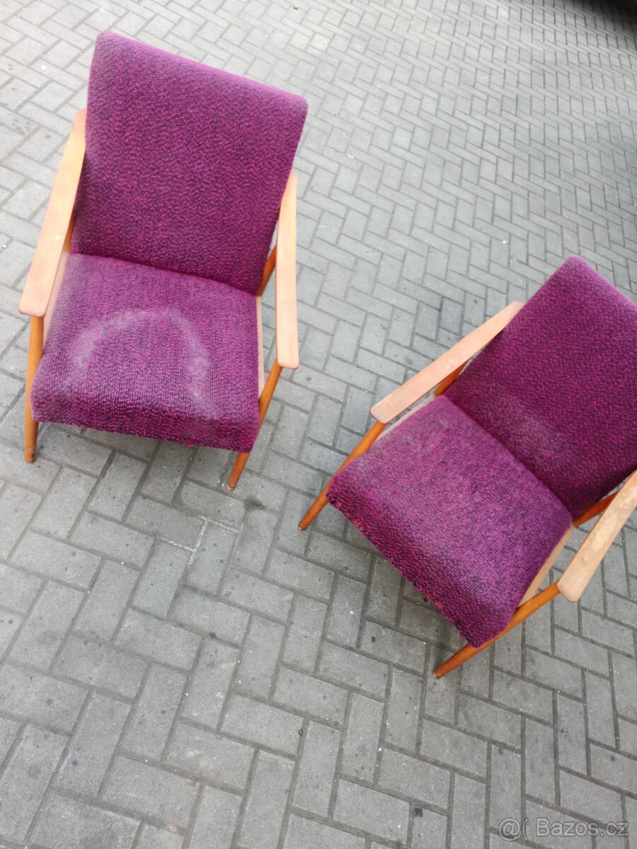 Retro křesla od návrháře J. Šmídka. - [13.4. 2026]Retro křesla od návrháře J. Šmídka s protaženými područkami.