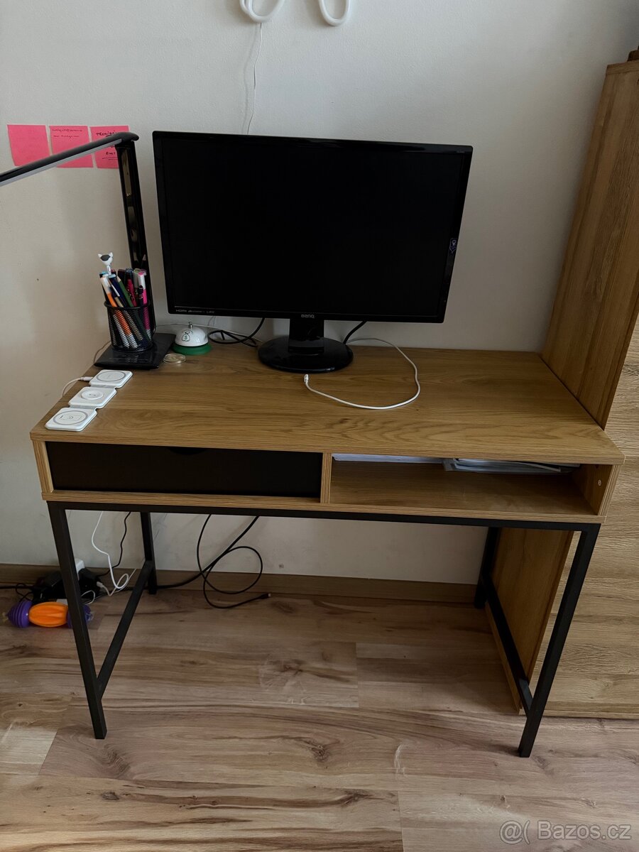 Psací stůl - [24.4. 2026]Dobrý den. Prodám psací stůl, světle dřevo (dýha) se 4 šuplíky a skříňkou s 2 policemi.