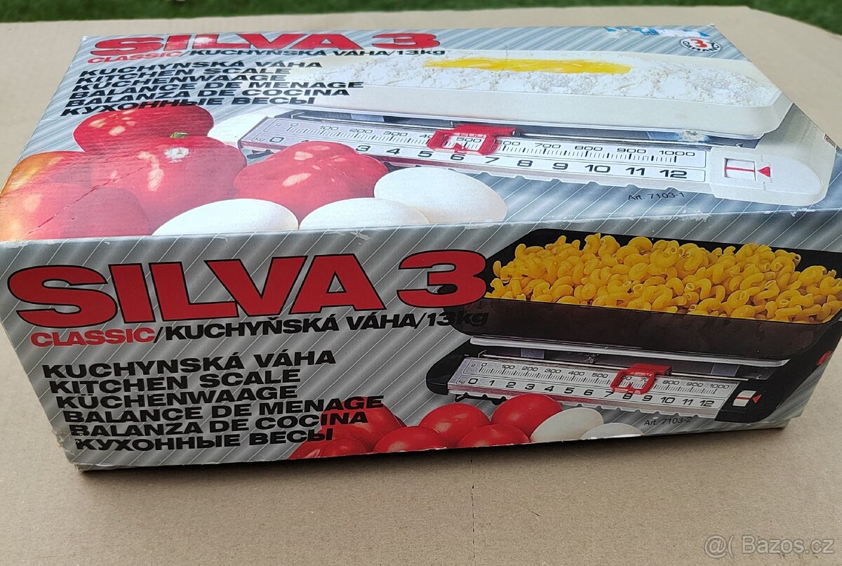 Váha Silva 3 Classic.Je klasická stolní váha. Kuchyňská váha do 13 kg. Součástí balení je nízká miska. Váha je jako nová v originální krabici. Prosím jen volat, ne SMS.