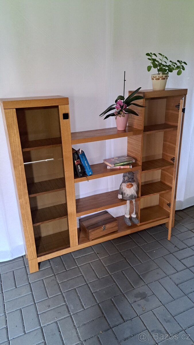 Nabizim k prodeji novou knihovnu v moderním provedeni z masivu přírodní dub +kouřové sklo na dviřkach. Mezi skříňkami 4 pevné police.Povrchová úprava olej osmo. rozměry š.v.h 147x135x24 šířka každé skříňky 42cm. Po domluvě možny odvoz v okruhu 50km.