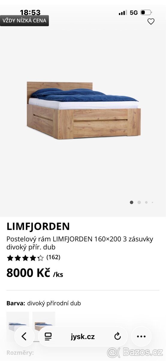 Postel 180x200 s nočními stolky, matracemi a roštem. Dub - [21.4. 2026]Manželská postel se spací plochou 180x200 s roštem a matracemi zdarma. K dispozici v dekóru dub sonoma. Dvoulůžková postel je široká 188, vysoká 80 a hluboká 215 cm. V základní sestavě jsou dva noční stolky o šířce 57, výšce 39 a hloubce 42 cm. Dopra ...