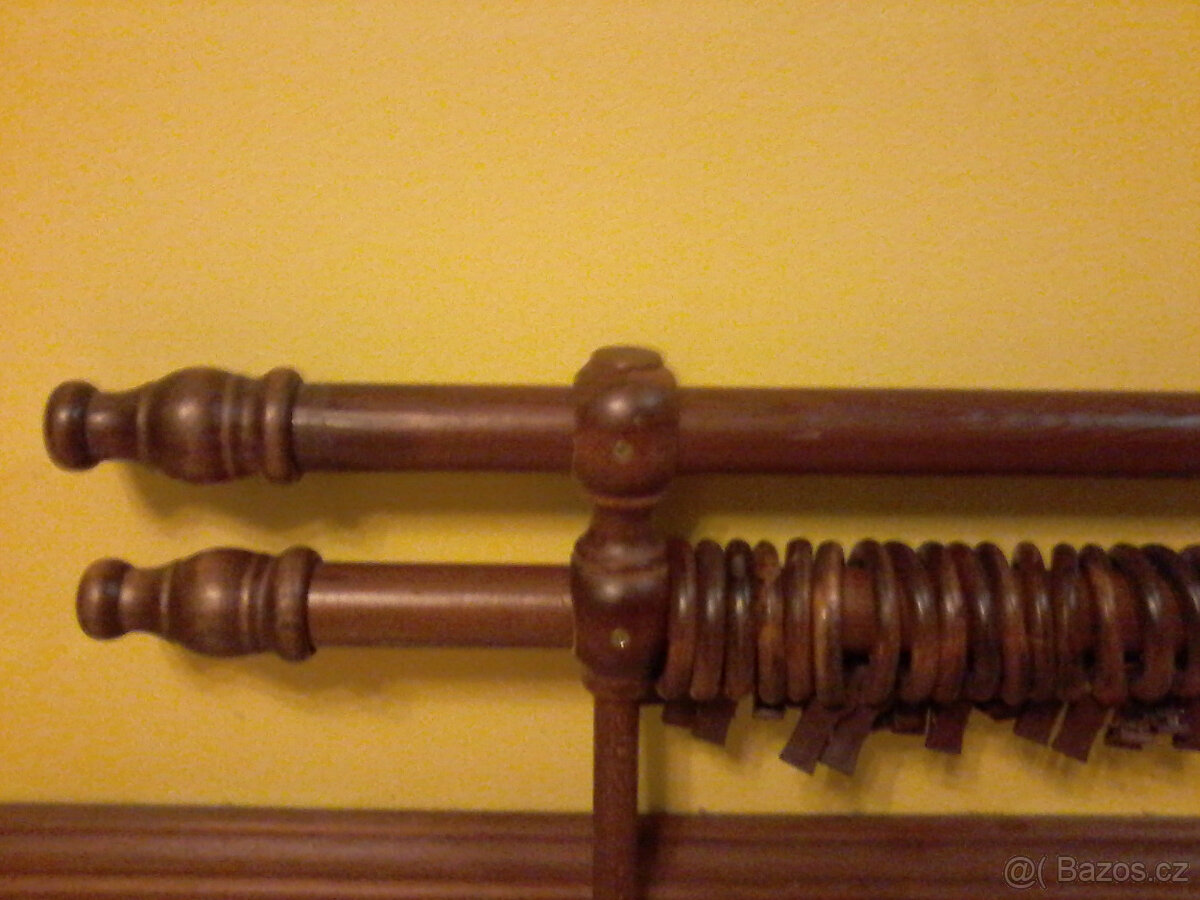 Dvojitá dřevěná garnýž (záclona, závěs) s úchyty a jezdci, délka 165cm. Osobní odběr. Kontakt prosím na mobil.