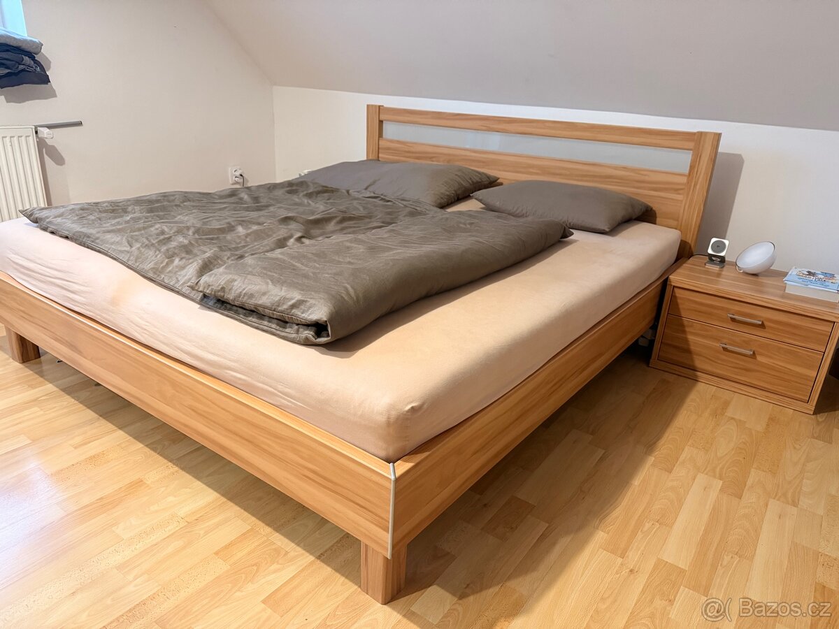 Prodám postel z masivu - [23.4. 2026]Manželská postel 180x200 velmi za chovalá ,masiv buk, úložné prostory,cena bez matrací!!! tloušťka materiálu 27mm