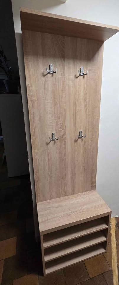 Věšáková stěna - [5.4. 2026]Prodám tuto věšákovou stěnu viz foto. Rozměry jsou: 138cm výška, 61cm šířka a hořejší díl je hluboký 30cm. Cena 950kč. Vlastní odběr Kožlany u Kralovic.
