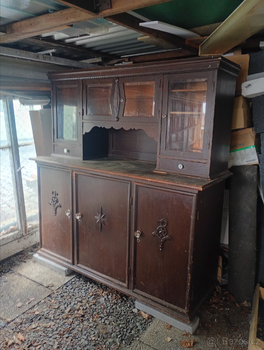 Prodám tuto starožitnou kredenc v pěkném,zachovalém stavu,klíče jsou od 5 zámků,mechanismus celého horního zámku chybí.Rozměry 160x166x59 cm.