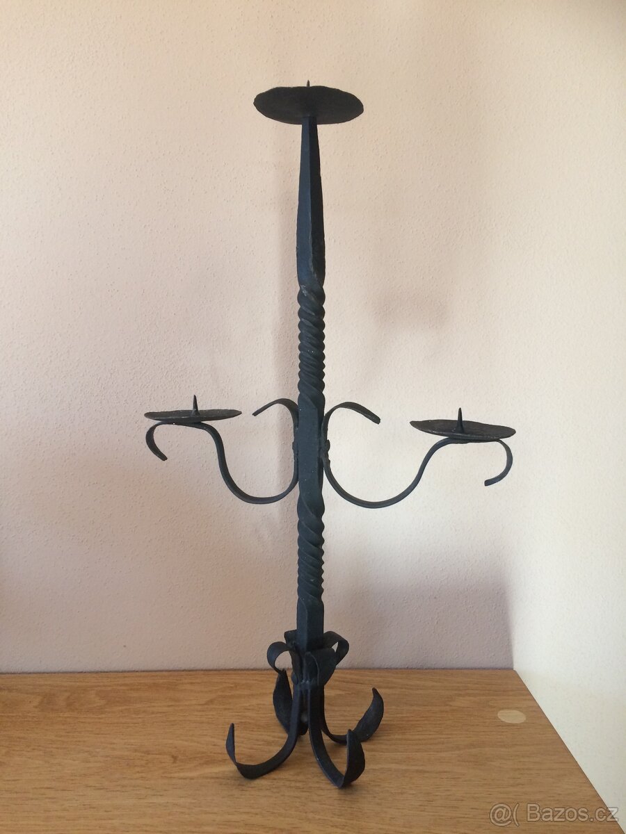 Kovaný svícen na 3 svíčky, vše viz foto. Osobní odběr Vratimov, případně možno zaslat přes Zásilkovnu.