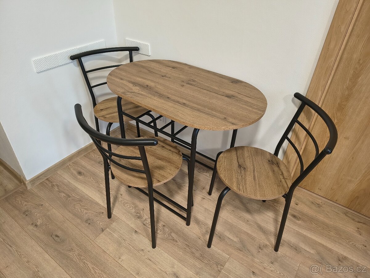 Prodám jídelní set - stůl + 3 židle v barvě černá/dub. Rozměry: stůl 91x55x75cm (dxšxv), super stav